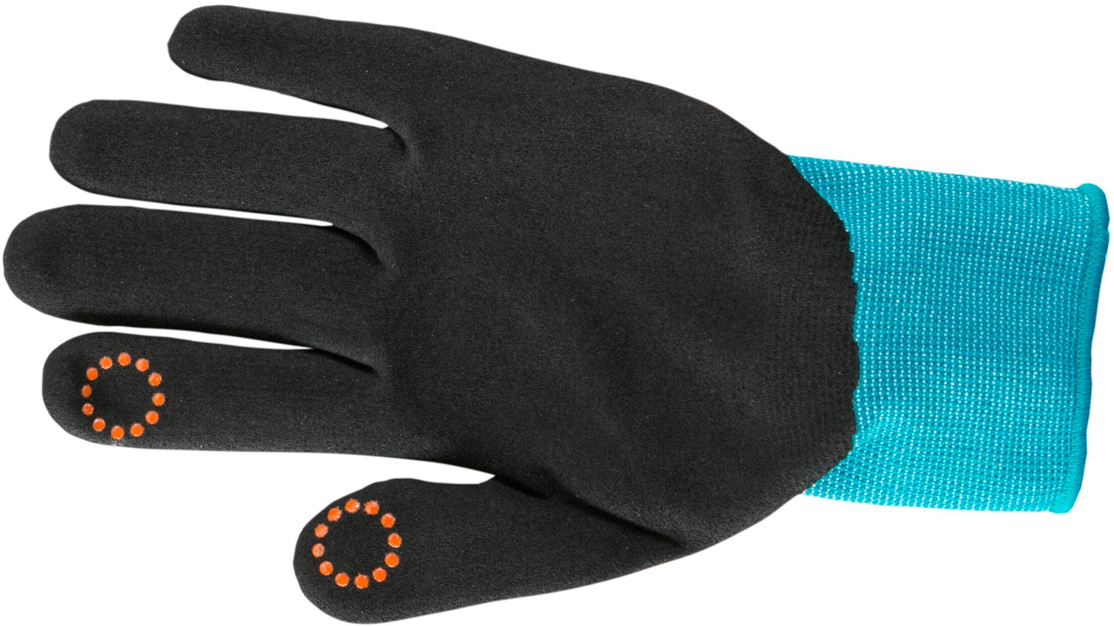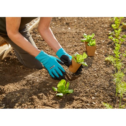 I guanti da giardinaggio L di Gardena sono ideali per lavori in aiuole o che richiedono un`elevata presa e protezione dall`umidità. Il tessuto traspirante e resistente consente un comfort elevato. La superficie interna robusta, aderente e idrorepellente assicura una manipolazione sicura e protezione. Grazie al particolare design dei polpastrelli su pollice e indice, è possibile utilizzare facilmente uno smartphone senza togliere i guanti.
