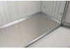 Base in lamiera striata di alluminio di alta qualità, composto da 3 - 4 segmenti compreso il profilo di collegamento, a seconda delle dimensioni della casetta da giardino. Piastra di base adatta anche per armadio per apparecchiature WoodStock 230.