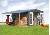 Il colore grigio quarzo metallizzato conferisce un aspetto elegante e moderno al tetto laterale, integrandosi perfettamente con lo stile della casetta per attrezzi Europa.