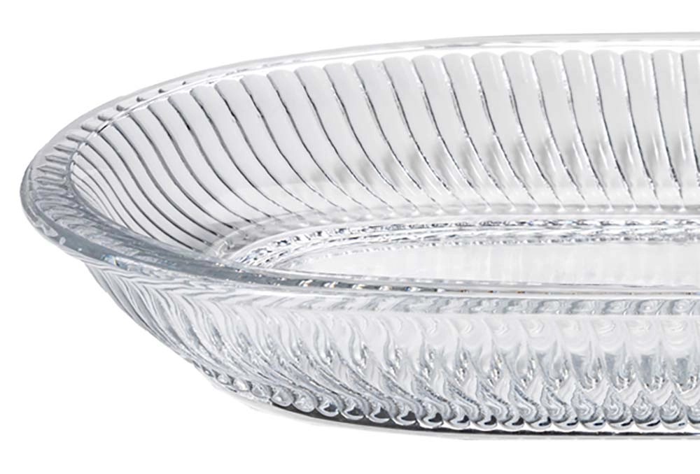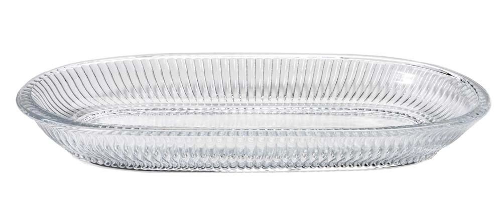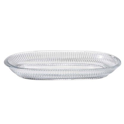 Jewel vassoio da appoggio in vetro colore ghiaccio, con finitura plissè. Discreto e raffinato. Misura 25x13x3 cm