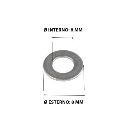Rondelle piane DIN 125. Misura: Ø int. dell`anello 8 mm,Ø est. dell`anello 15 mm, spessore 1 mm. Progettate per distribuire uniformemente il carico dei bulloni o delle viti su una superficie più ampia, migliorando la stabilità della giunzione.