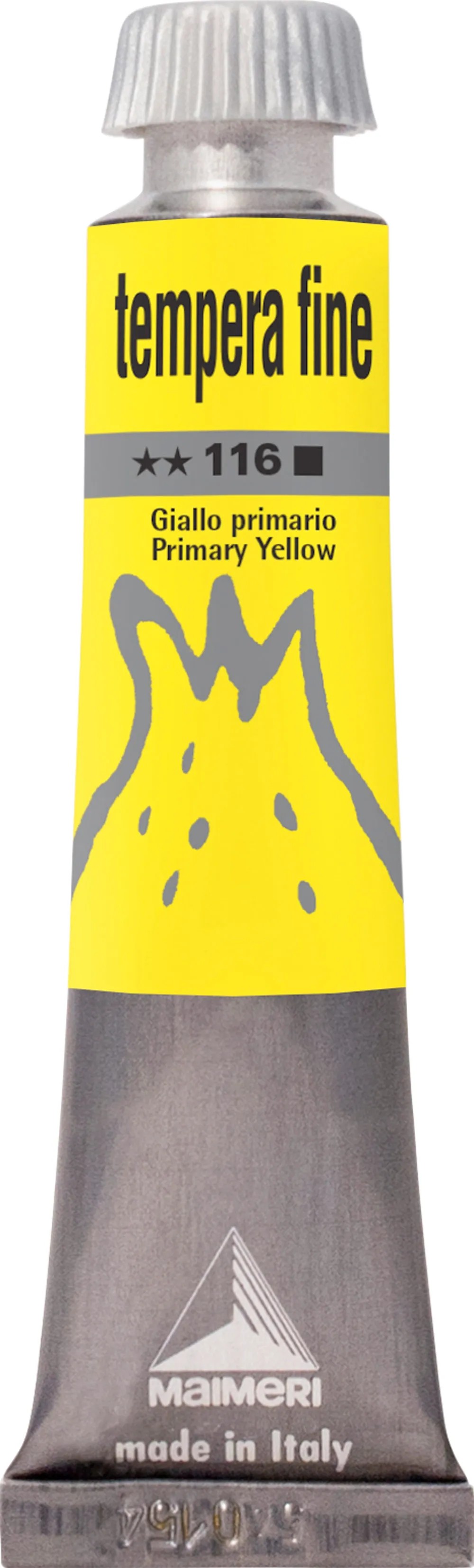 Colore tempera fine giallo primario da 20 ml. La cartella colori tempera fine è studiata con grande duttilità per il lavoro di studenti, amatori e professionisti. Particolarmente meditata l`armonizzazione della scala cromatica che consente un equilibrato rapporto tonale in tutto l`arco della tavolozza. La totale inalterabilità del legante, consente reversibilità e conservazione di toni e colori ineccepibili nel tempo.