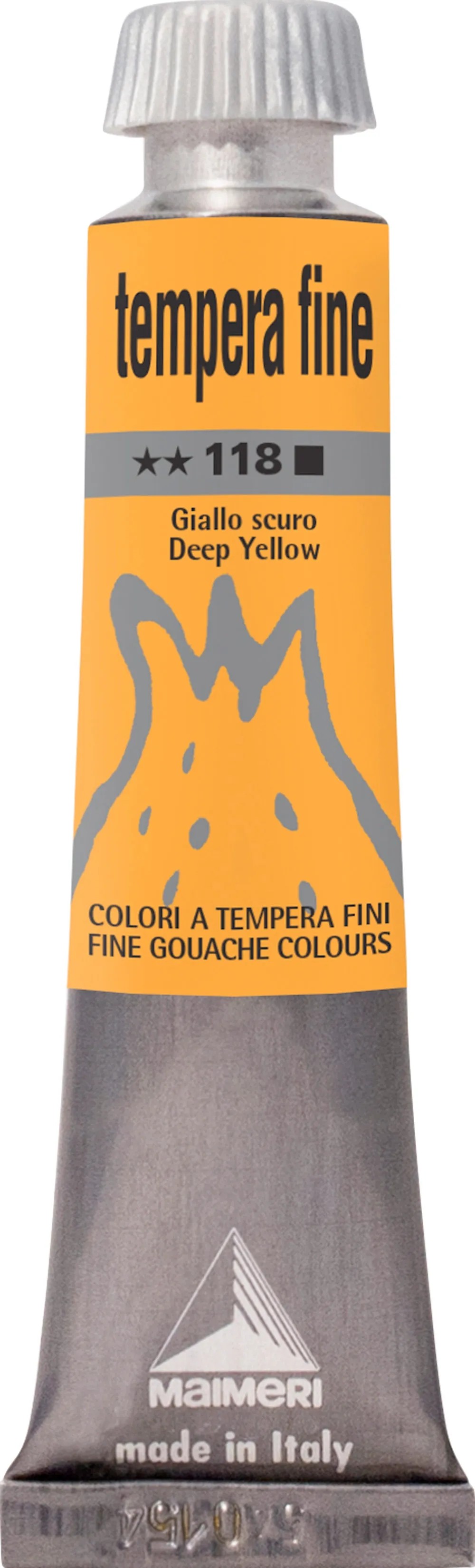 Colore tempera fine giallo scuro da 20 ml. La cartella colori tempera fine è studiata con grande duttilità per il lavoro di studenti, amatori e professionisti. Particolarmente meditata l`armonizzazione della scala cromatica che consente un equilibrato rapporto tonale in tutto l`arco della tavolozza. La totale inalterabilità del legante, consente reversibilità e conservazione di toni e colori ineccepibili nel tempo.
