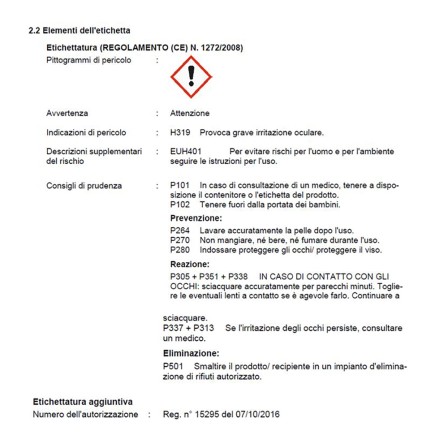 | Pericolosità per le api: | B4 (non pericoloso per le api) |