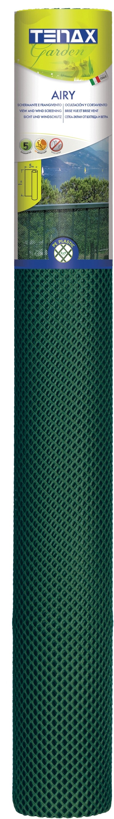 Rete protettiva in plastica a maglia romboidale in HDPE verde. Ideale come frangivista e frangivento. Gradevole effetto estetico, è stabilizzata ai raggi UV, garantita 10 anni.