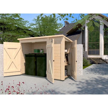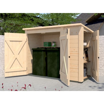 L`armadio da giardino è suddiviso in due parti e offre ampio spazio utilizzabile per riporre biciclette, bidoni dei rifiuti o attrezzi da giardinaggio. Grazie all`anta doppia con luce netta di 133x133 cm (o 66,5x133 cm) il contenuto dell`armadio è facilmente accessibile. Può contenere persino due bidoni dei rifiuti (fino a 240 l) affiancati.