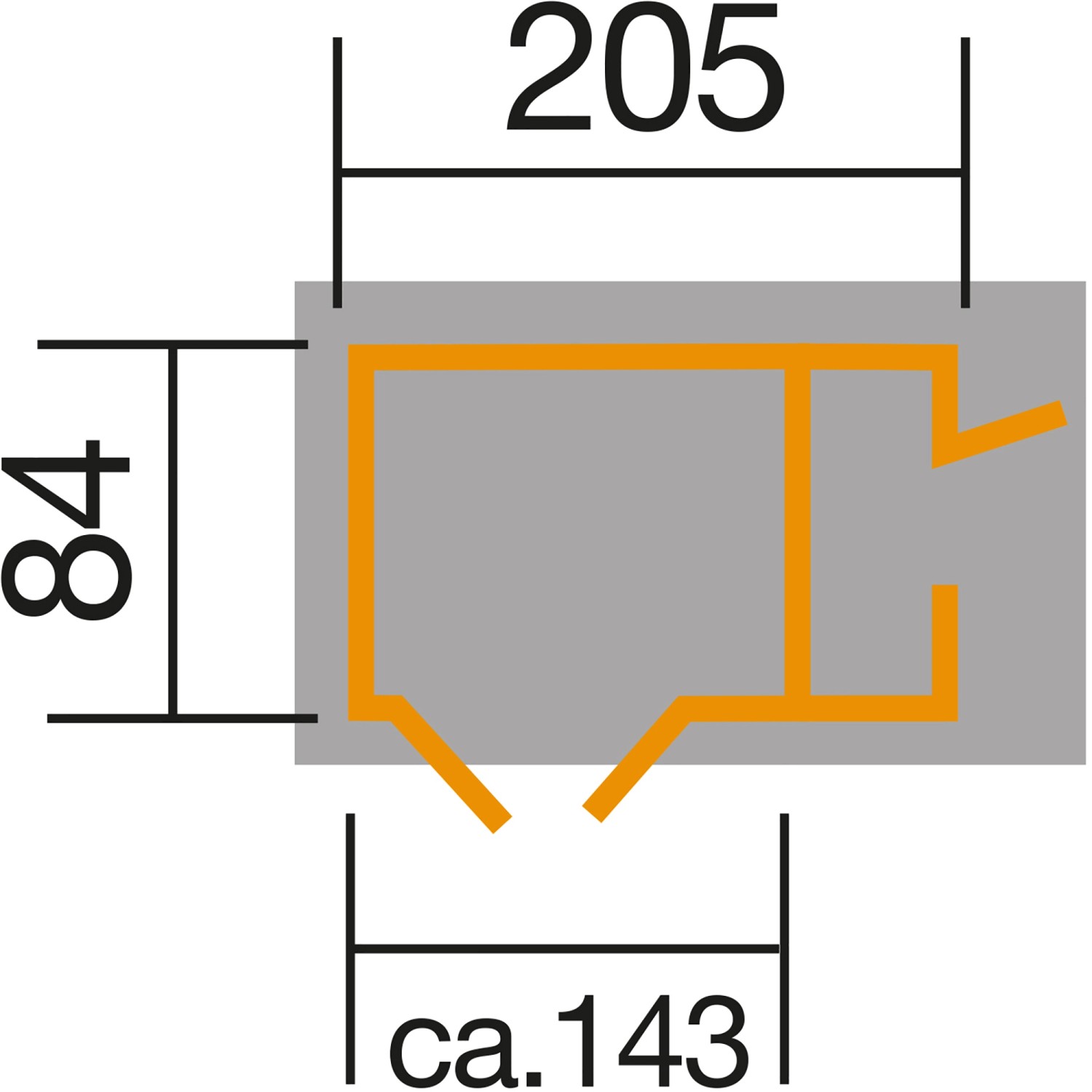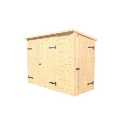Le pareti di spessore 21 mm, unite mediante moderne giunzioni angolari, assicurano la stabilità e durata della struttura. I listoni delle pareti sono avvitati fra loro agli angoli con uno stabile pilastro angolare. I bordi di testa sono protetti esternamente dalle intemperie mediante profili di copertura, che assicurano un aspetto estetico curato. La sottostruttura è costituita da travi impregnate in autoclave, non ricoperte da doghe. L`intero armadio da giardino è realizzato in legno non trattato, in modo da consentire una personalizzazione creativa dei colori. Si consiglia una vernice impregnante di protezione dalle intemperie.
