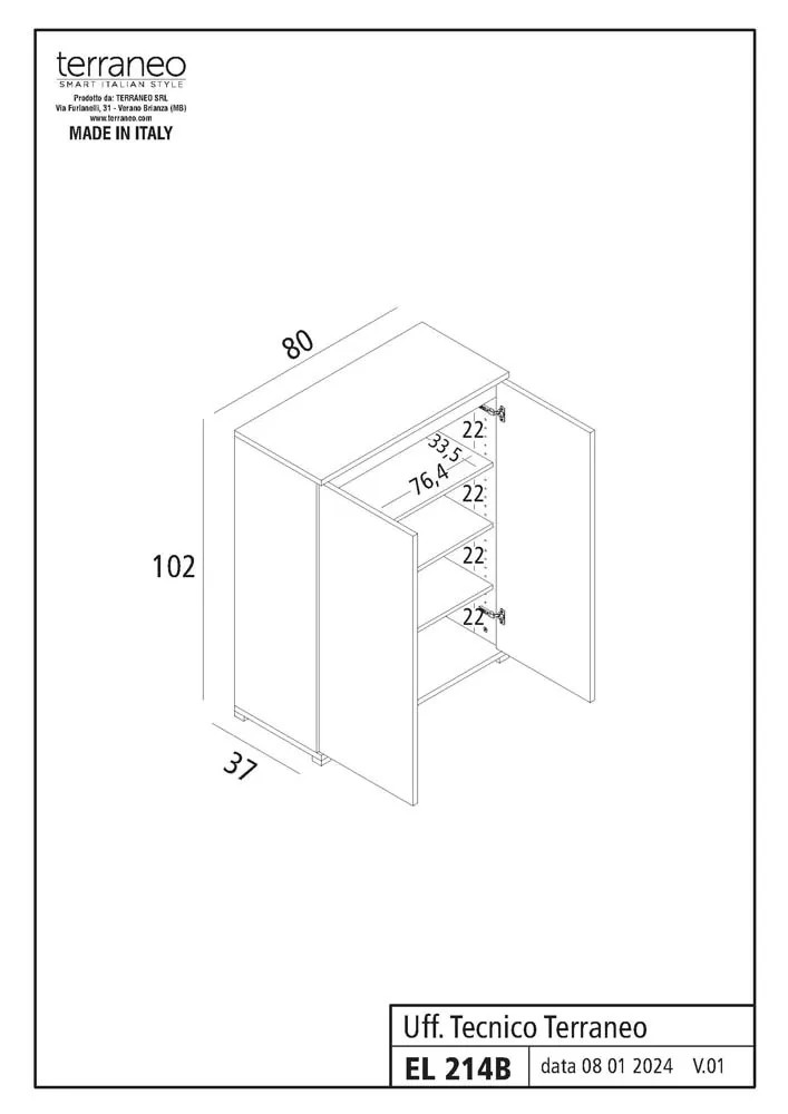 Dimensioni compatte: Con misure di 80x37x102 cm, il mobile è abbastanza compatto da non occupare troppo spazio, pur offrendo una notevole capacità di stoccaggio. È ideale per ambienti di dimensioni ridotte o per chi desidera ottimizzare gli spazi.