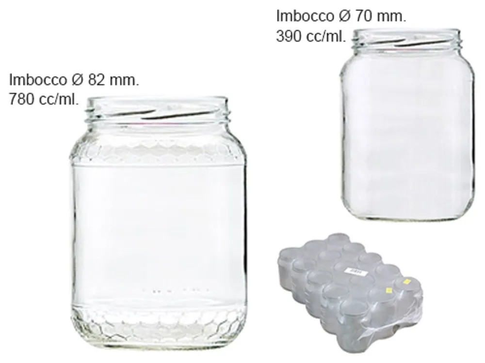 Barattoli vetro miele imbocco diametro 70 mm cc 390 cf 20 pezzi