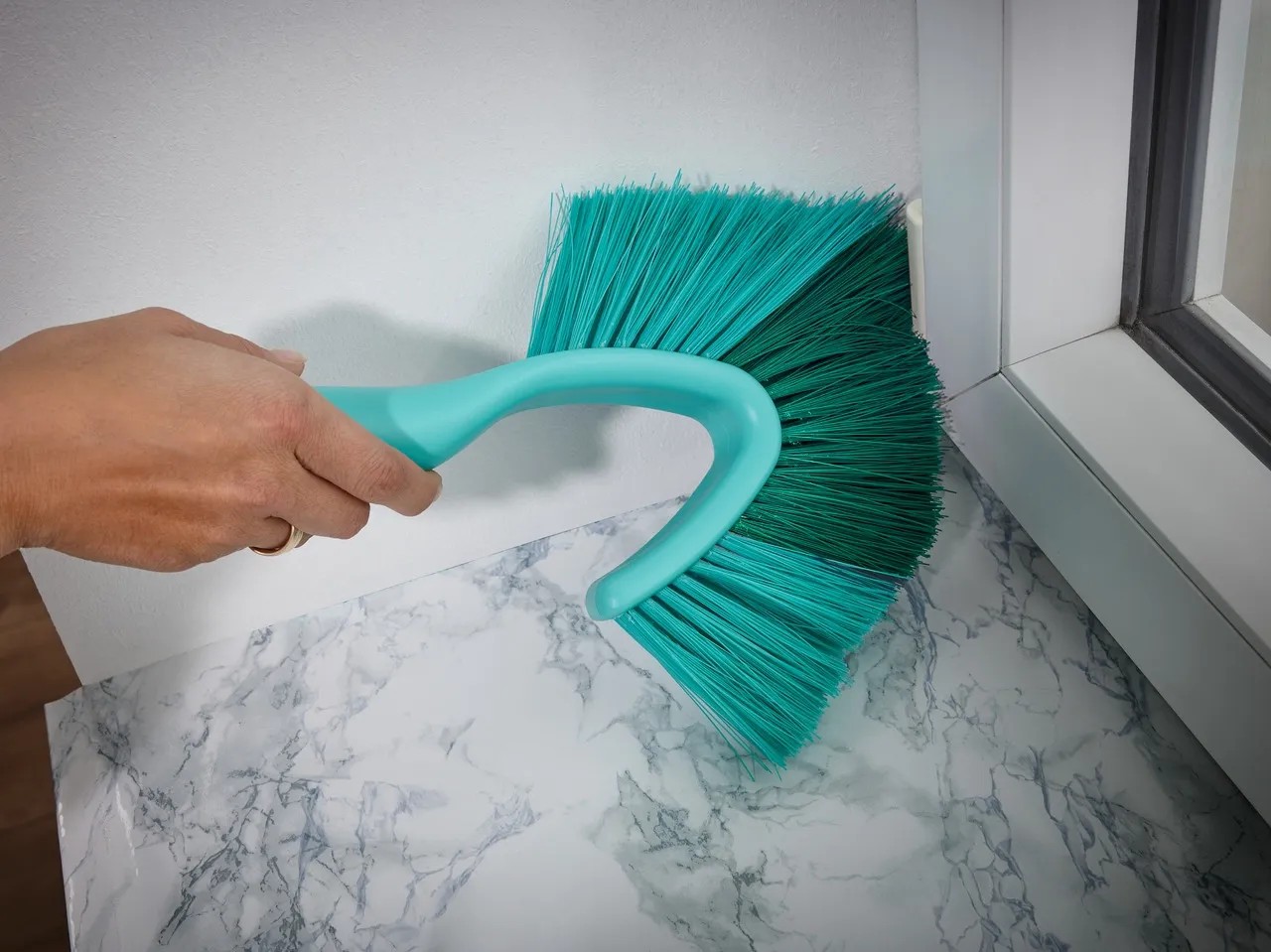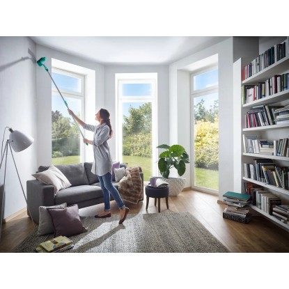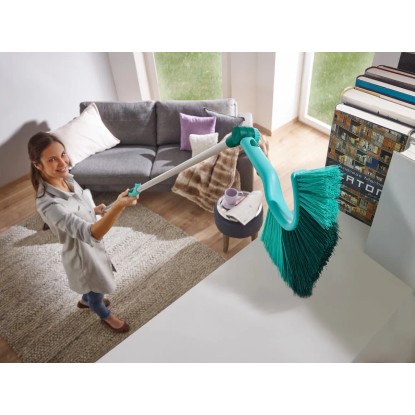 Con la scopetta per pareti e soffitti Dusty è possibile rimuovere sporco, ragnatele e polvere da ogni angolo e angolazione. Grazie al suo design migliorato, raggiunge punti difficilmente accessibili anche dietro l`asta delle tende. La scopetta a mano compatta è dotata del sistema Easy-Click di Leifheit ed è possibile prolungarla con 1 dei 3 manici telescopici disponibili separatamente. La scopetta a mano può essere pulita sotto l`acqua corrente.