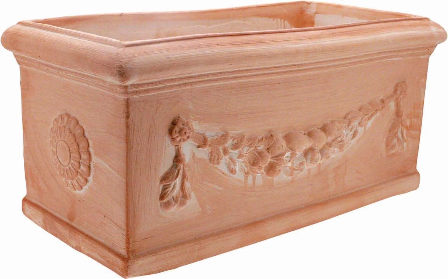 La cassetta festonata nasce dall`esperienza dei maestri vasai che lavorano l`argilla nel rispetto della tradizione che caratterizza il nostro artigianato e ne garantisce la qualità. Ogni prodotto nasce e cresce da una mano esperta che dà valore ed unicità al vaso. I prodotti, grazie alle pregiate argille utilizzate sono garantiti fino a -20 gradi rendendoli di fatto antigelivi.
