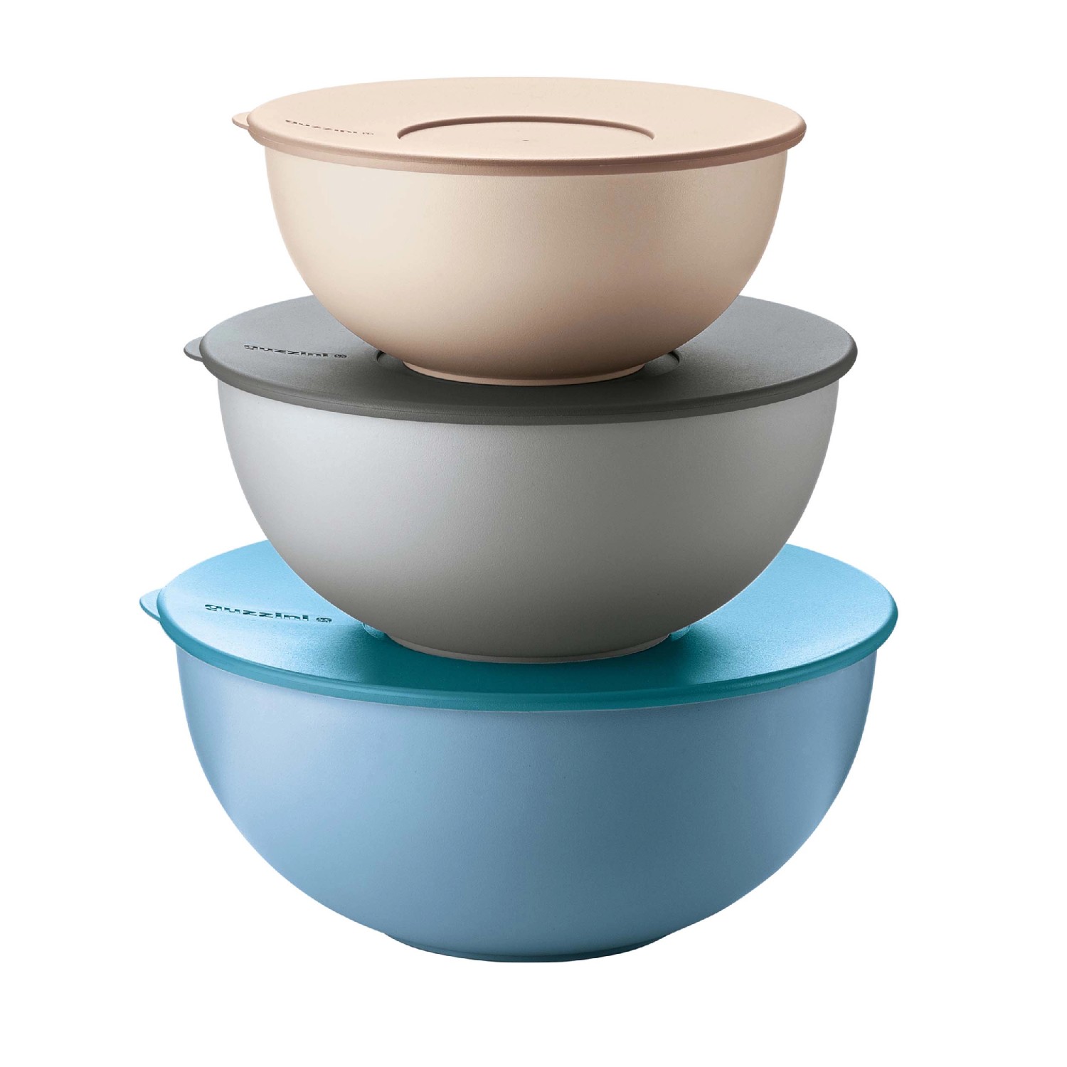 Tre pratici e versatili contenitori con coperchio per preparare, conservare e servire ovunque e ogni giorno. Utiizzabili in microonde.