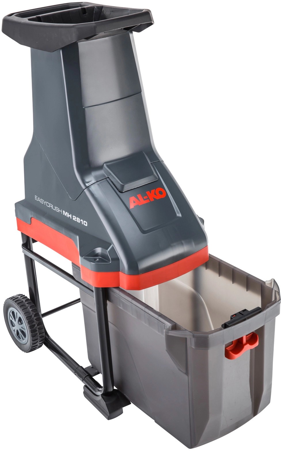 Biotrituratore a lame AL-KO Easy Crush 2800 MH. Grazie all`alimentazione a lame brevettata della grande tramoggia è possibile introdurre il materiale da triturare senza fatica e con la massima comodità. La maniglia integrata assicura un semplice trasporto. Il grande cesto di raccolta integrato in materiale ABS presenta una forma estremamente stabile e ideale per il trasporto del materiale triturato. Inoltre, il contatto di chiusura garantisce la massima sicurezza.