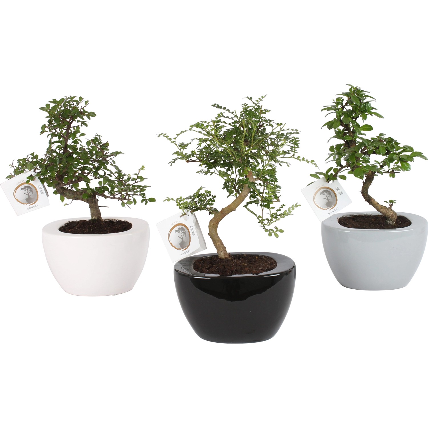 Il bonsai in composizione in vaso di ceramica dalle varie tonalità di colore a forma di S, attirerà sicuramente l`attenzione nella tua casa. È anche l`ideale come piccolo regalo e diffonde un`atmosfera asiatica.