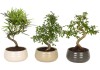 Questi bonsai sono davvero speciali poiché sono cresciuti in una forma a spirale. La bellissima ceramica dai toni tenui sottolinea l`atmosfera asiatica di questa composizione.
