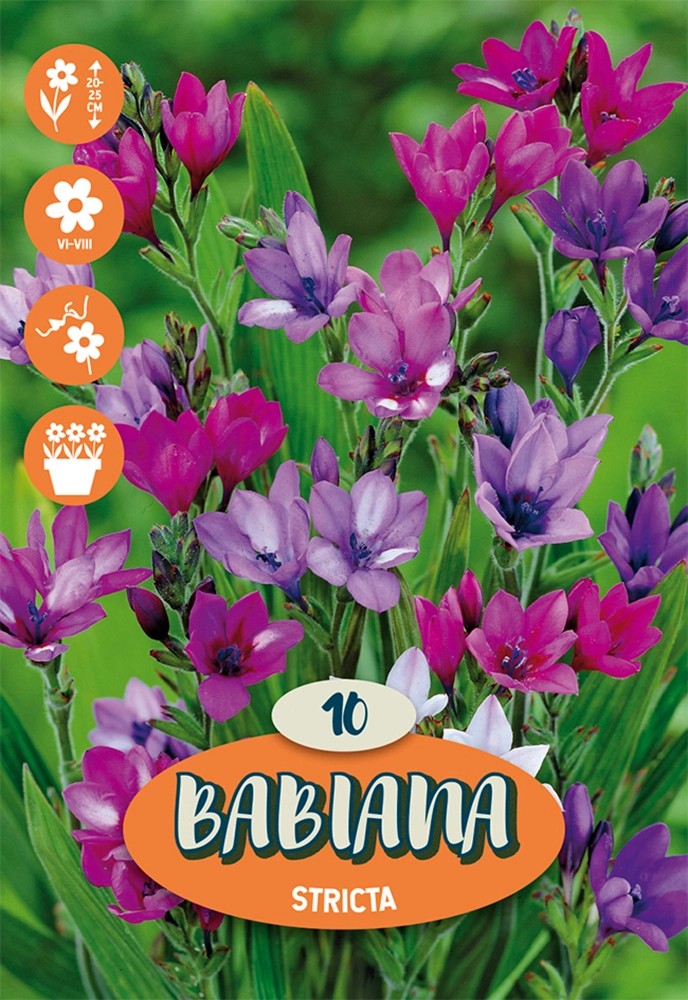 La Babiana "Stricta Mix" è un fiore estivo, il cui bulbo va piantato in primavera ad una profondità di più o meno 5 cm. Il terreno deve essere drenante, come per tutti i bulbi, altrimenti la pianta marcisce. È ideale per aiuole fiorite o bordure.