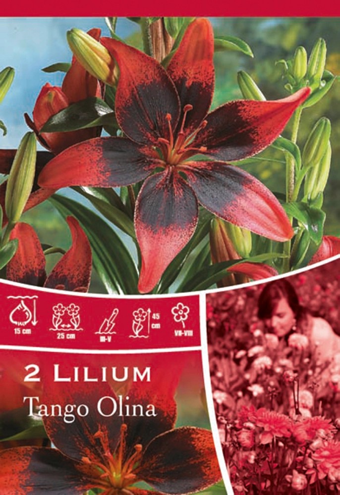 Il giglio "Tango Olina" è un fiore estivo il cui bulbo va piantato in primavera ad una profondità di ± 10 cm. Il terreno deve essere drenante, come per tutti i bulbi, altrimenti la pianta marcisce. Si consiglia di piantare i gigli, così come i gladioli, in gruppo. I gigli fioriscono in tarda estate.