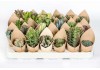 Piante grasse succulente vendute con cover in cartone. Le piante grasse sono coltivati in Italia. Una selezione di succulente miste provenienti da diverse famiglie botaniche, ciascuno con forme, colori e dettagli unici. Questo mix accattivante, ideale per arricchire qualsiasi ambiente con un tocco esotico e affascinante ha tra le varietà presenti piante come Crassula, Echeveria, Sedum, Kalanchoe, Senecio e altre, creando una collezione visivamente stimolante e interessante.