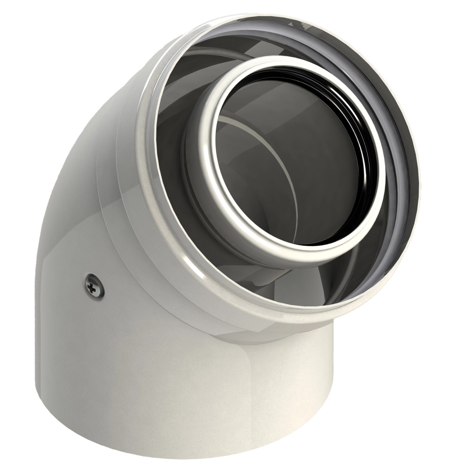 La curva universale coassiale 60/100 a 45° per lo scarico fumi è un componente utilizzato per deviare il percorso dei gas di scarico delle caldaie a condensazione. Questa curva ha un angolo di 45° e viene utilizzata per creare un'angolazione nel sistema di evacuazione dei fumi, consentendo una migliore adattabilità alle configurazioni dell'impianto. È progettata per essere compatibile con caldaie a condensazione di tutti i marchi disponibili sul mercato.
