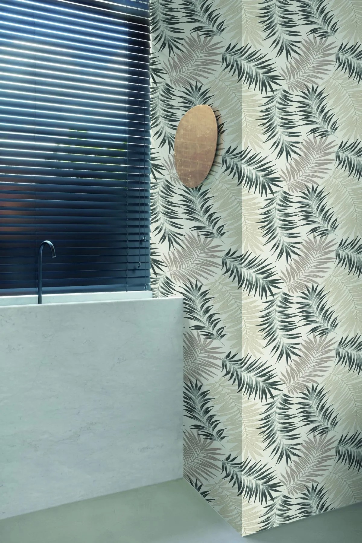 Carta da parati felce beige nera