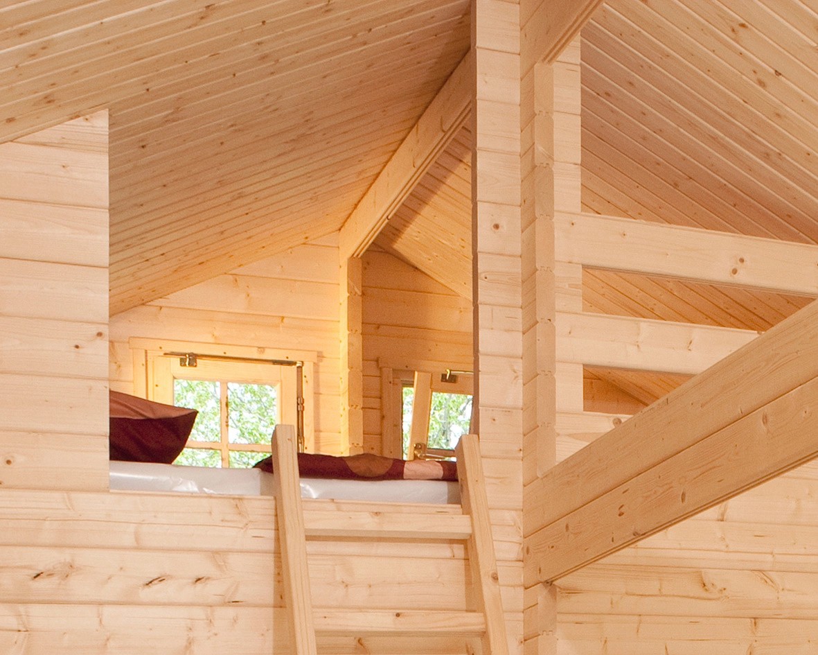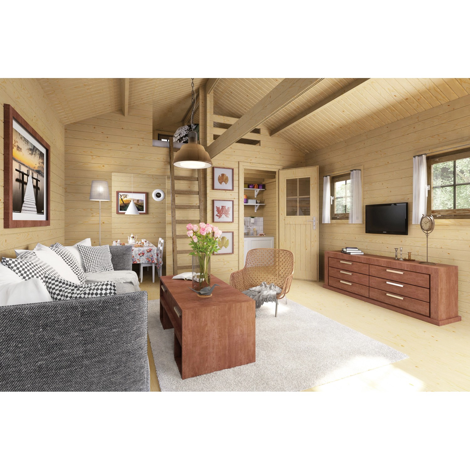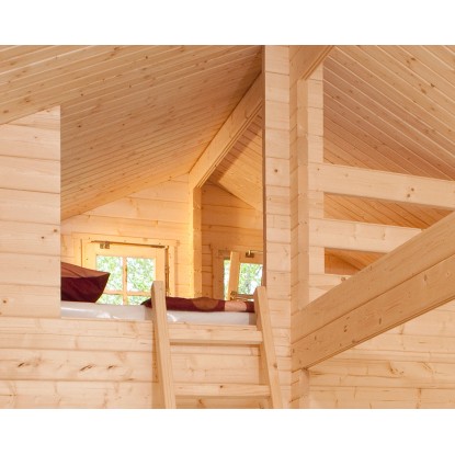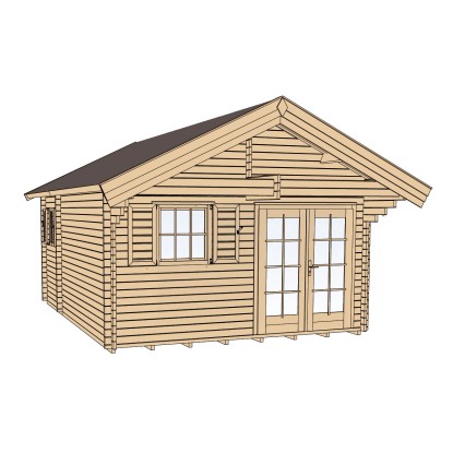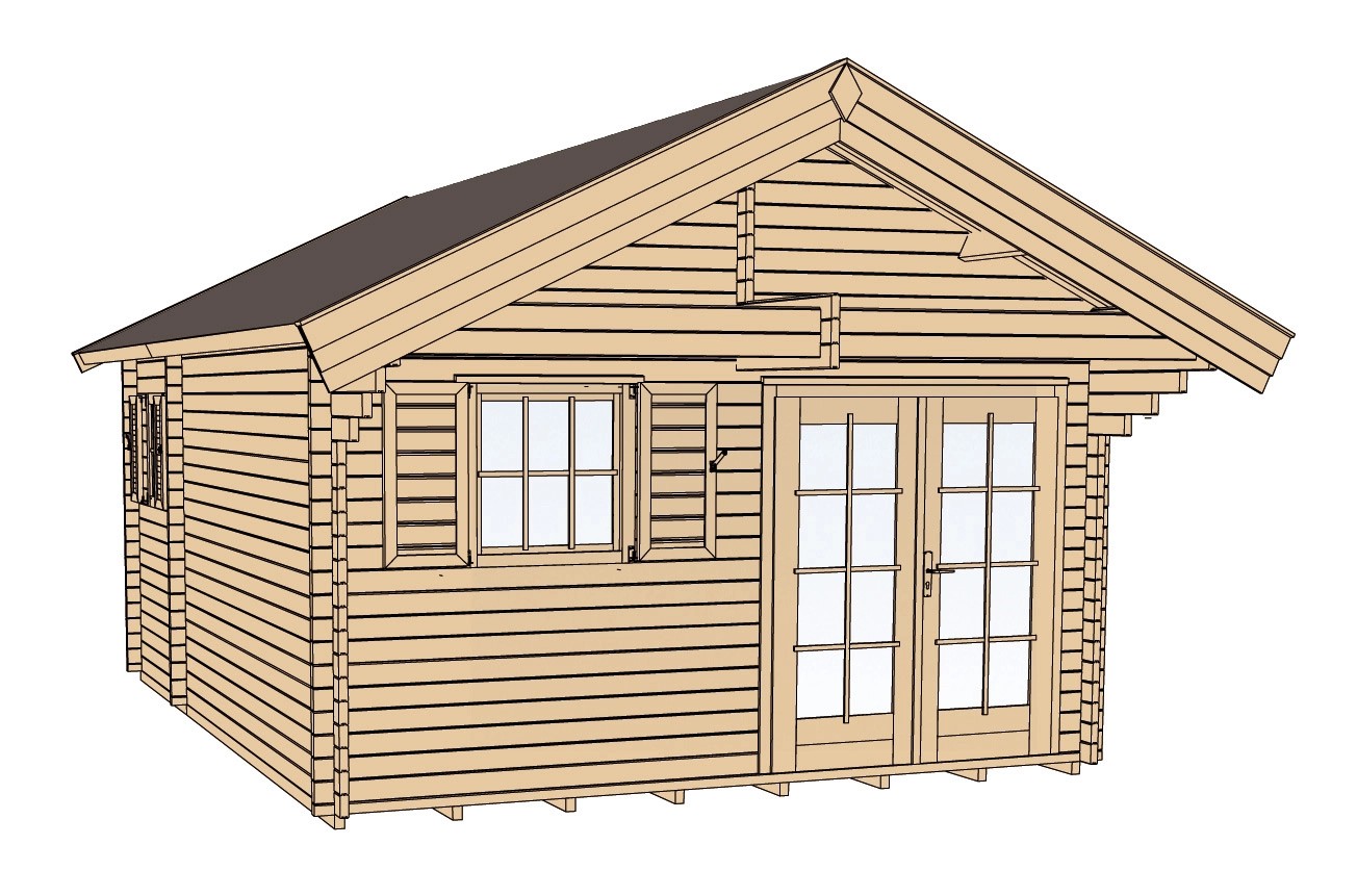 La casetta da giardino è realizzata in legno non trattato con costruzione in tronchi di legno. Grazie alla superficie naturale, viene mantenuto un aspetto naturale con venatura del legno. Per la protezione dagli agenti atmosferici, la superficie può essere rifinita individualmente con una verniciatura o una velatura. La casetta da giardino in legno presenta una struttura robusta, con uno spessore della parete di 45 mm. Il massimo carico di neve del tetto a doppia falda è di 75 kg/m². L`altezza del colmo è di 358 cm, il che offre un`altezza libera sufficiente all`interno.