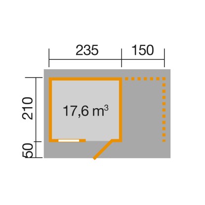 La casetta da giardino in legno Weka, con una superficie di base di 8,1 m², è progettata per risparmiare spazio. Offre una larghezza di passaggio di 81 cm e un`altezza di passaggio di 173 cm. L`ampio ingresso consente un facile accesso alla casetta da giardino in legno, anche con attrezzi più grandi, utensili da giardino, biciclette e mobili da giardino. L`altezza del colmo è di 226 cm, il che offre un`altezza libera sufficiente all`interno. Il pavimento è già incluso nella fornitura.