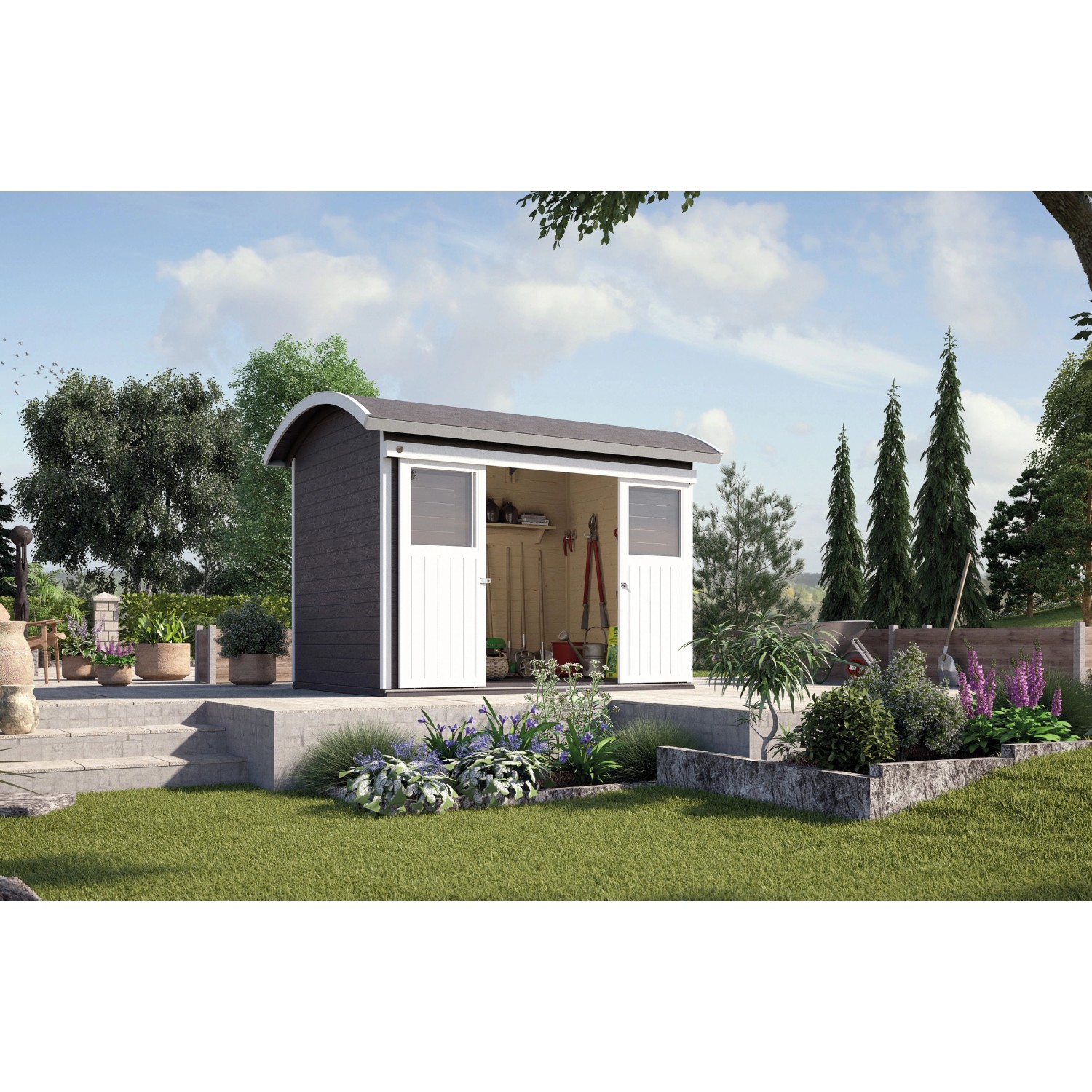 La casetta da giardino in legno convince per il suo design moderno ed è disponibile nel colore antracite. Grazie alla superficie smaltata viene mantenuto un aspetto naturale con venatura del legno e la casetta da giardino viene protetta dagli agenti atmosferici.