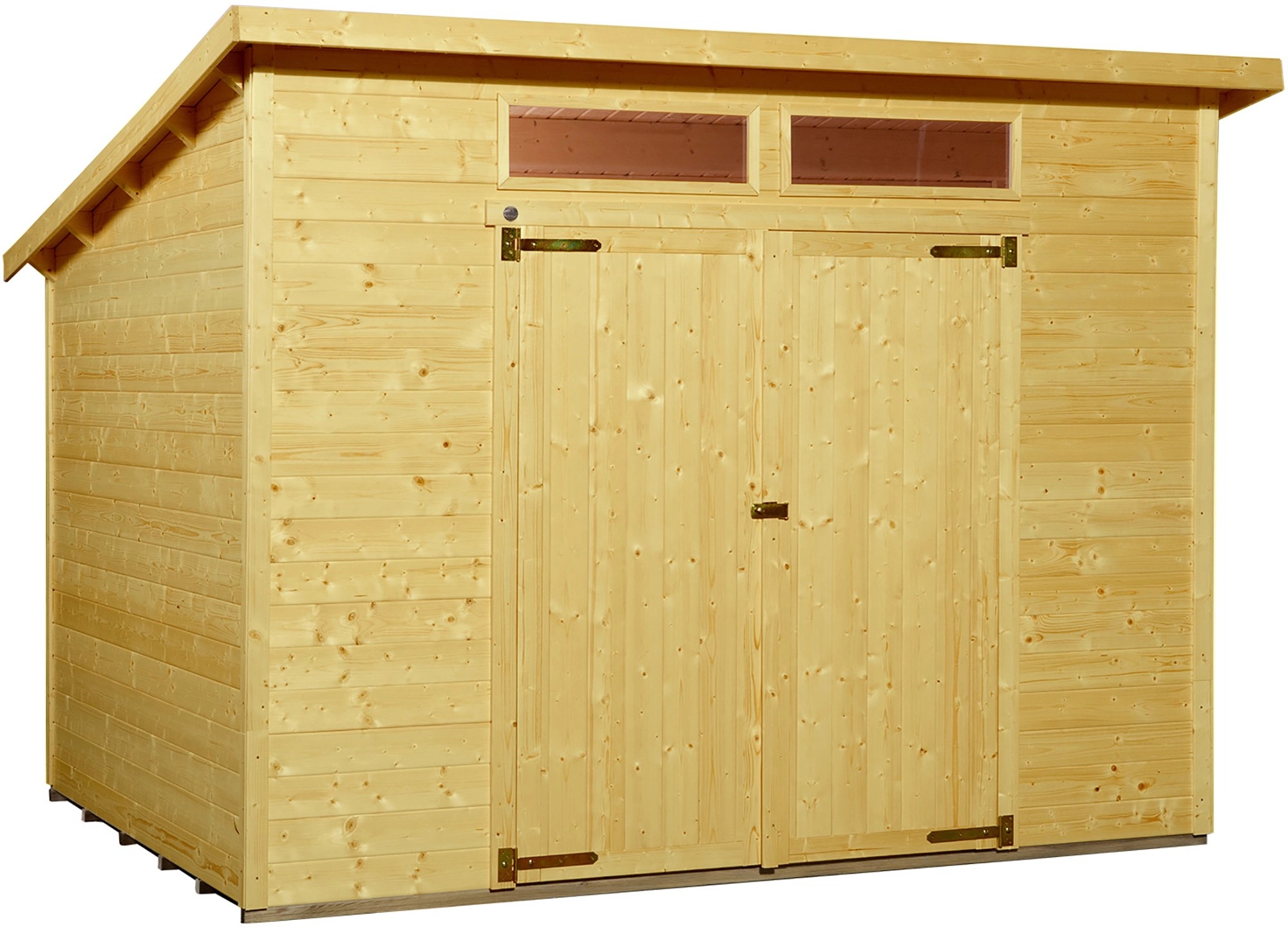 La casetta da giardino in legno convince per il suo design classico e si presenta in un sobrio colore rovere chiaro.