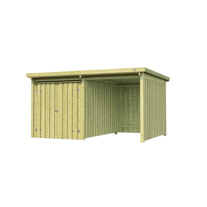 Fare ordine non è più un problema con la casetta porta-attrezzi. Il pratico deposito a tetto piano può essere sfruttato per diversi usi e si monta rapidamente. Le pareti sono solide, di spessore 20 mm, impregnate in autoclave e quindi protette dalle intemperie. L`esecuzione del pavimento consente il ricovero agevole di attrezzi pesanti, grazie all`assenza della soglia che sarebbe di ostacolo.