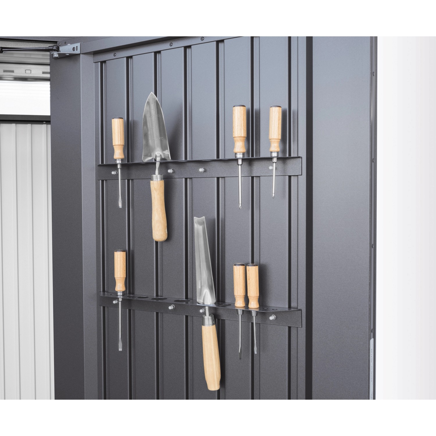 La Casetta da giardino Biohort HighLine rappresenta la scelta ideale per coloro che cercano un deposito spazioso, resistente e dal design accattivante per gli attrezzi da giardino, le biciclette e altri oggetti vari. Con una superficie di base ampia di 6,6 m², offre un notevole spazio di stoccaggio per organizzare gli strumenti in modo ordinato. Le sue pareti spesse 0,5 mm garantiscono una costruzione stabile e resistente, mentre il tetto può sopportare un carico di neve fino a 150 kg/m², garantendo protezione affidabile in tutte le stagioni.
