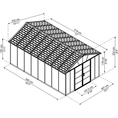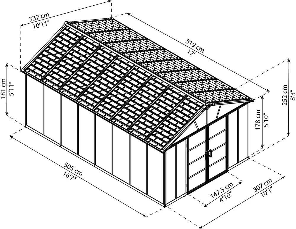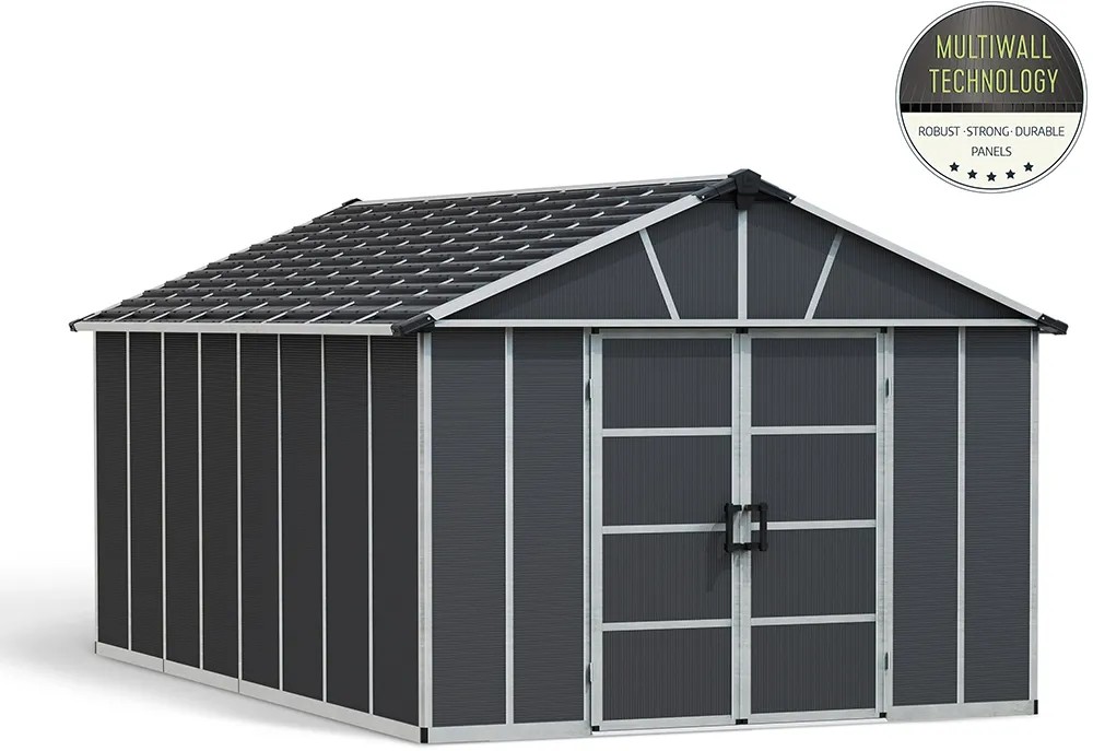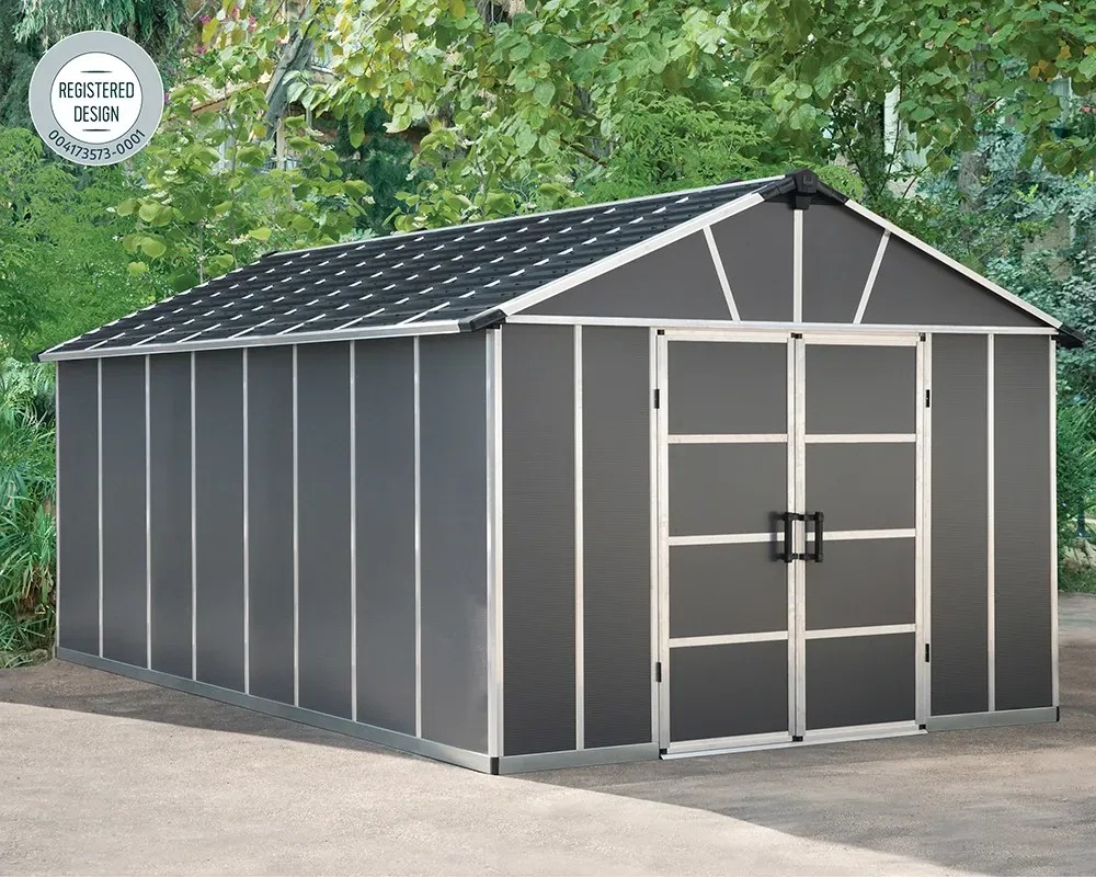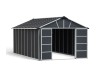 La casetta da giardino Palram Yukon in metallo da 17,2 m² è la soluzione ideale per custodire gli attrezzi e riporre oggetti in modo pratico ed efficiente.