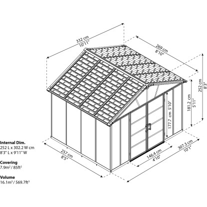 Casetta da giardino in PVC Palram Canopia Yukon sp. 10 mm grigio 9 m²