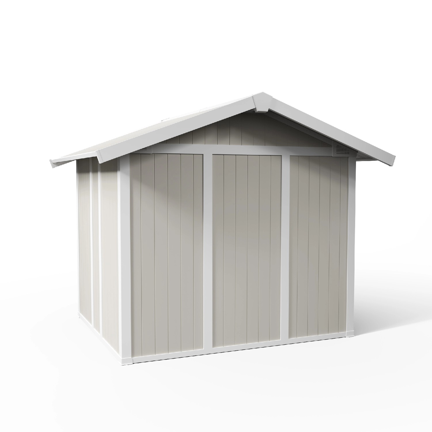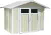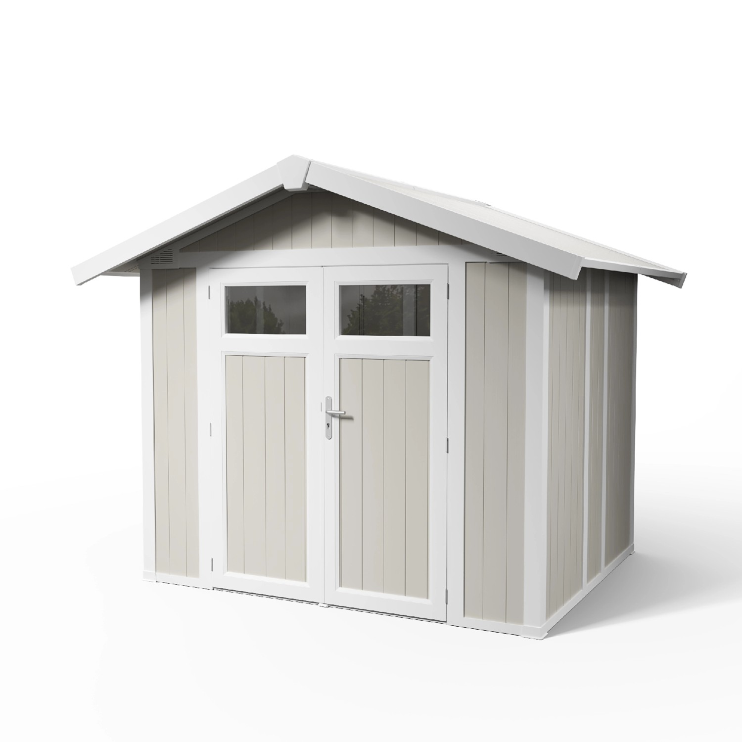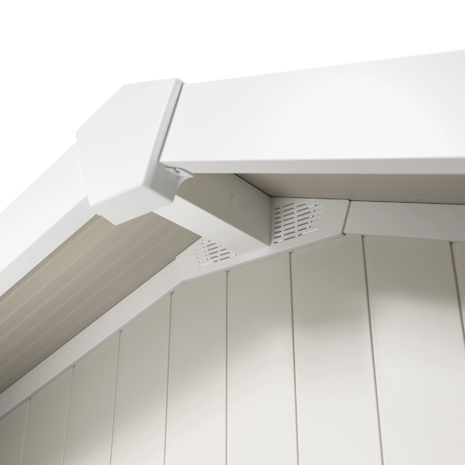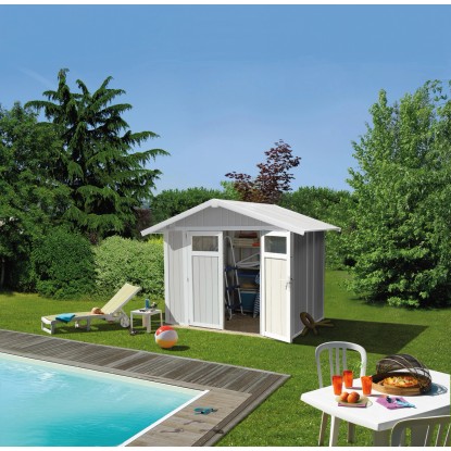 Questa casetta da giardino è costituita da robuste doghe alveolari in PVC alta resistenza, imputriscibili, colorate nella massa. Offre una resistenza eccezionale alla deformazione, ai raggi UV e alle intemperie. Prodotto ecologico: non richiede nessuna verniciatura nel tempo e può essere riciclato al 99%. Per la manutenzione è sufficiente un semplice lavaggio ad acqua. La struttura interna del tetto è rinforzata con una trave centrale in acciaio galvanizzato. Un accesso facilitato e un passaggio di materiale agevolato, grazie ad una ampia doppia apertura di porta. Delle griglie di ventilazione permettono una buona aerazione. Un serratura metallica con chiave, permette di mettere al sicuro i vostri atrezzi. Il fissaggio della casetta su una piattaforma di cemento o lastre di pietra garantisce la perfetta aderenza.