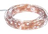 Cavo in metallo colore silver con 200 MicroLED bianco freddo adatto per uso in ambienti esterni e interni. Completo di Memory Controller con 8 giochi di luce selezionabili.