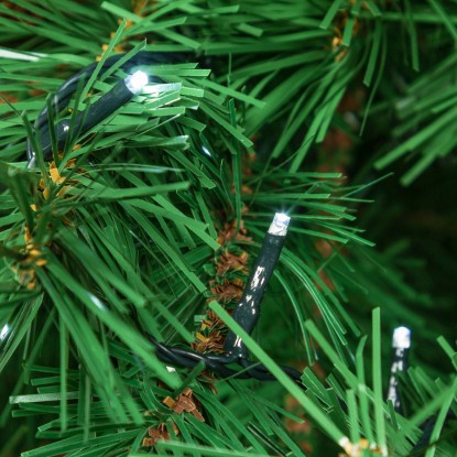Catena lineare con 450 LED da Ø 5 mm bianco freddo, adatta per uso in ambienti interni e esterni. Dotata di Memory Controller con 8 giochi di luce selezionabili. Completa di trasformatore 24 V e cavo di alimentazione da 2 m colore verde.