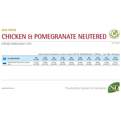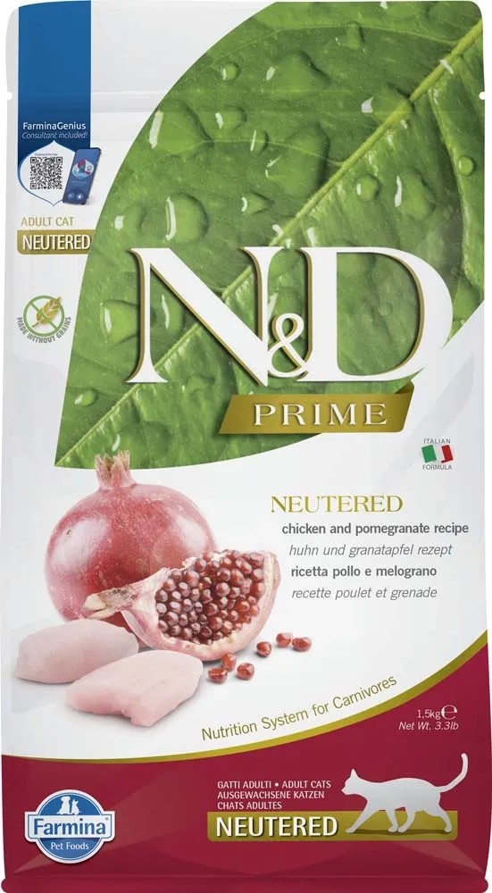 I croccantini per gatti sterilizzati N&D è un alimento completo ed è appositamente formulato per soddisfare le esigenze nutrizionali specifiche dei gatti adulti sterilizzati. La ricetta con pollo e melograno offre una combinazione bilanciata di ingredienti di alta qualità.