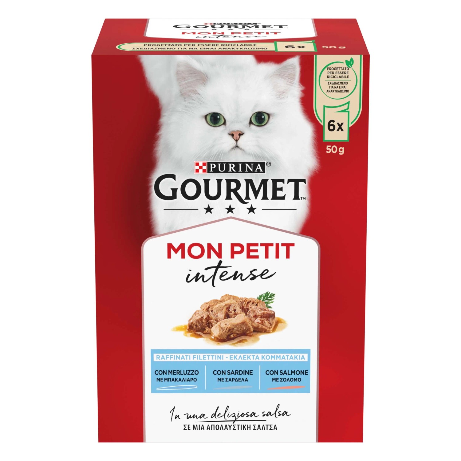 Gourmet Mon Petit Intense. Un'accurata selezione di prelibate ricette per celebrare l'essenza del gusto. Raffinati filettini in una deliziosa salsa con porzioni sempre fresche e appetitose.