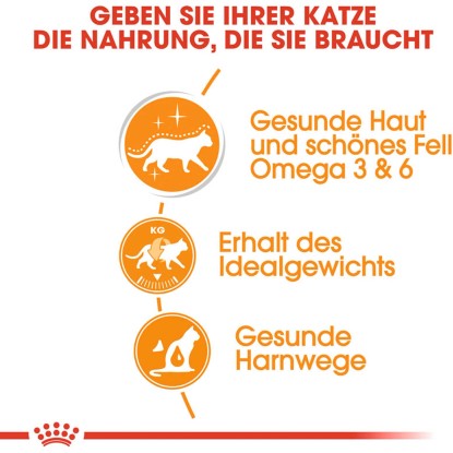 - Salute della Pelle e del Pelo: La formula Royal Canin Hair & Skin Care è specificamente creata per favorire la salute della pelle del tuo gatto e per aiutarlo a mantenere un pelo folto, sano e lucido.