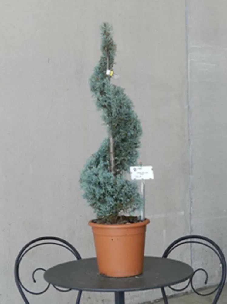 Origine: Italia. Conifera dal portamento conico o strettamente colonnare, con i rami molto densi e ravvicinati, che coprono il tronco dalla cima all`apice. Foglie sempreverdi, squamiformi, imbricate, di colore blu vivo, in primavera, colpite dal sole, emettono bagliori argentei. Fiori e frutti: conifera monoica che fiorisce e fruttifica raramente. Presenta ampia adattabilità ai climi più diversi: da quelli freddi e piovosi, a quelli caldi e secchi, ai climi marini.