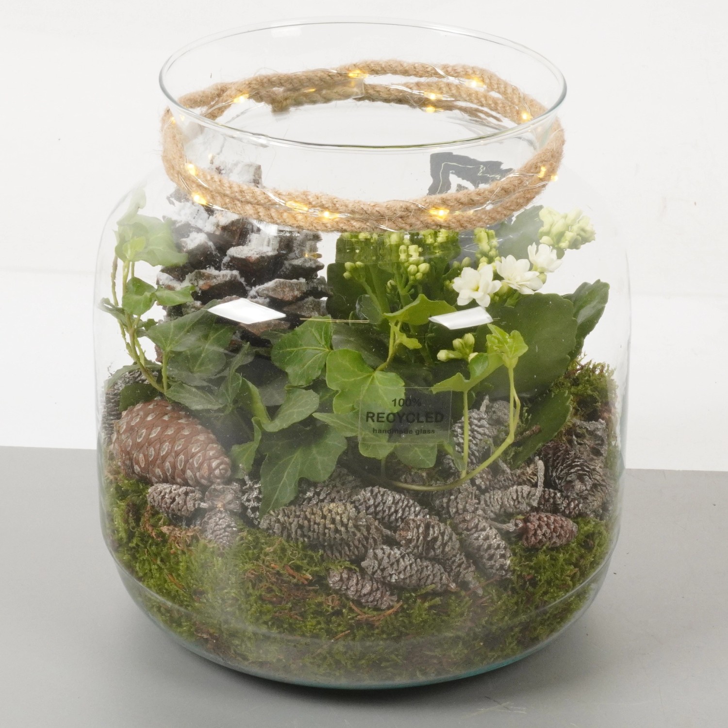 Composizione in barattolo di vetro Ø cm 19 fiori bianchi