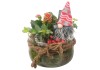 La composizione di piante è ideale da regalare durante le feste. Le piante, di facile manutenzione, sono posizionate in un vaso di vetro con gnomo colore rosso.