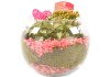 Questa composizione, contenuta all`interno di un vaso di vetro sferico, è in tema rosa e comprende una pianta di Calancola rosa, una di Fittonia.L`aggiunta di un cuoricino, pietre e trucioli di legno rosa e muschio creano l`idea regalo.Le piante contenute sono da interno. Il diametro del vaso è 17 cm.