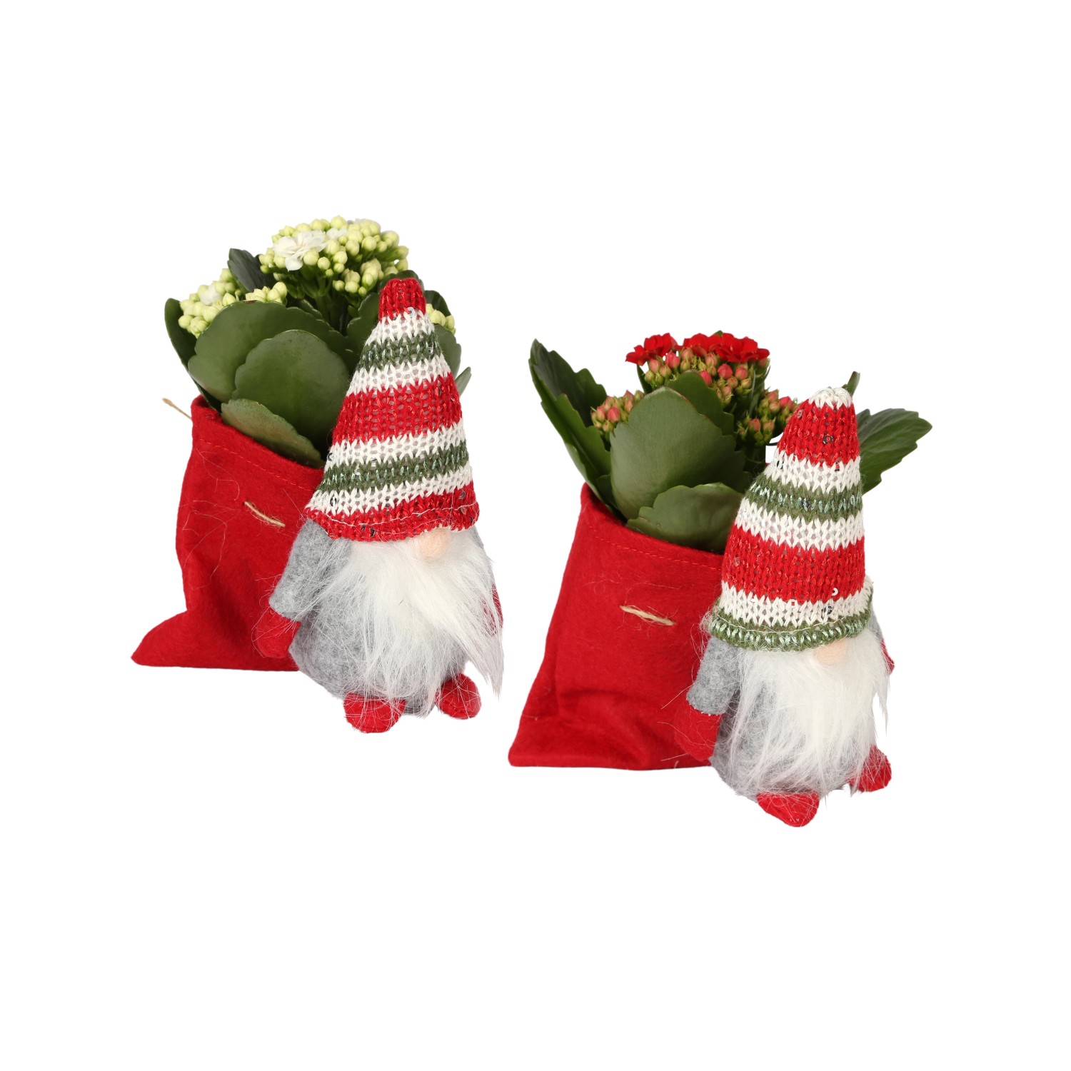 Kalanchoe in vaso a forma di Babbo Natale. Questa graziosa composizione arricchisce i tuoi interni durante il periodo natalizio. È facile da mantenere, basta annaffiarlo una volta alla settimana.