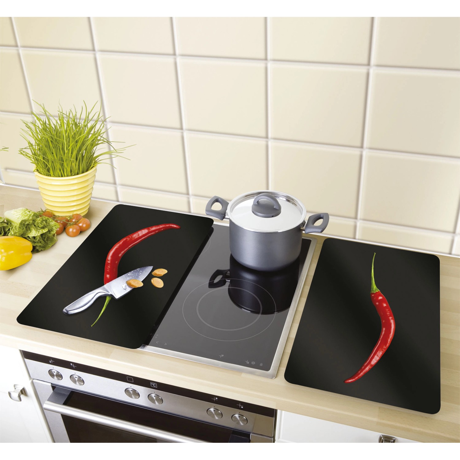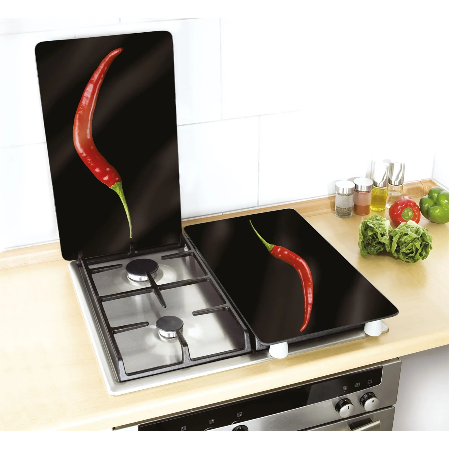 Coprifornelli in vetro Universal Peperoncino 30x52 cm 2 pz
