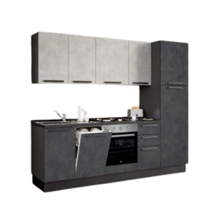 La Cucina Licola 255 cm è una soluzione completa, versatile e già pronta all'uso, ideale per chi desidera funzionalità e stile in poco spazio. La sua configurazione reversibile permette di adattare la disposizione agli spazi della propria casa, mentre la finitura grigio moderno valorizza ogni ambiente. Dotata di tutti gli elettrodomestici essenziali, offre praticità quotidiana e qualità Made in Italy.