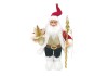Un simpatico Babbo Natale in piedi, accompagnato da un piccolo albero e un bastone, realizzato in plastica e rifinito con dettagli in tessuto poliestere. Perfetto per decorare la casa durante le feste con un tocco tradizionale e festoso.