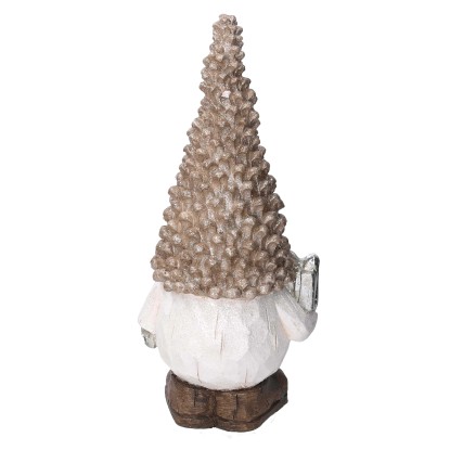 Gnomo in resina grigio con LED (21,5x16,5x47 cm), elegante decorazione natalizia perfetta per aggiungere un tocco magico alla tua casa.