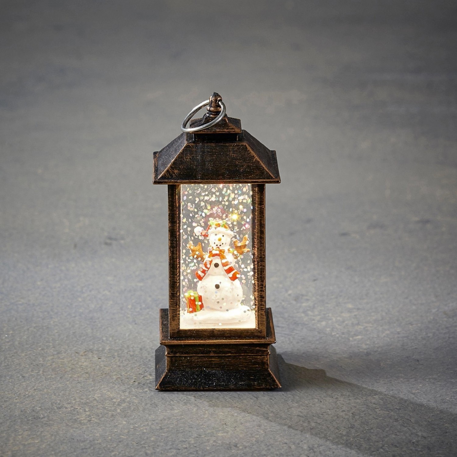 Lanterna natalizia con neve luce bianco caldo 5x5x12,5 cm assortita 3 pz