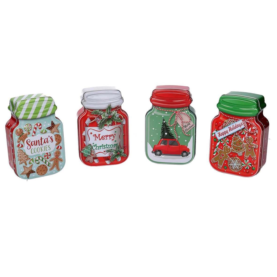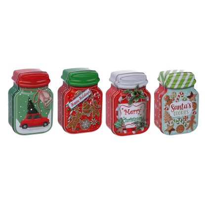 Scatola in metallo barattolo verde e rosso 4 assortiti 9,7h15hh5 cm