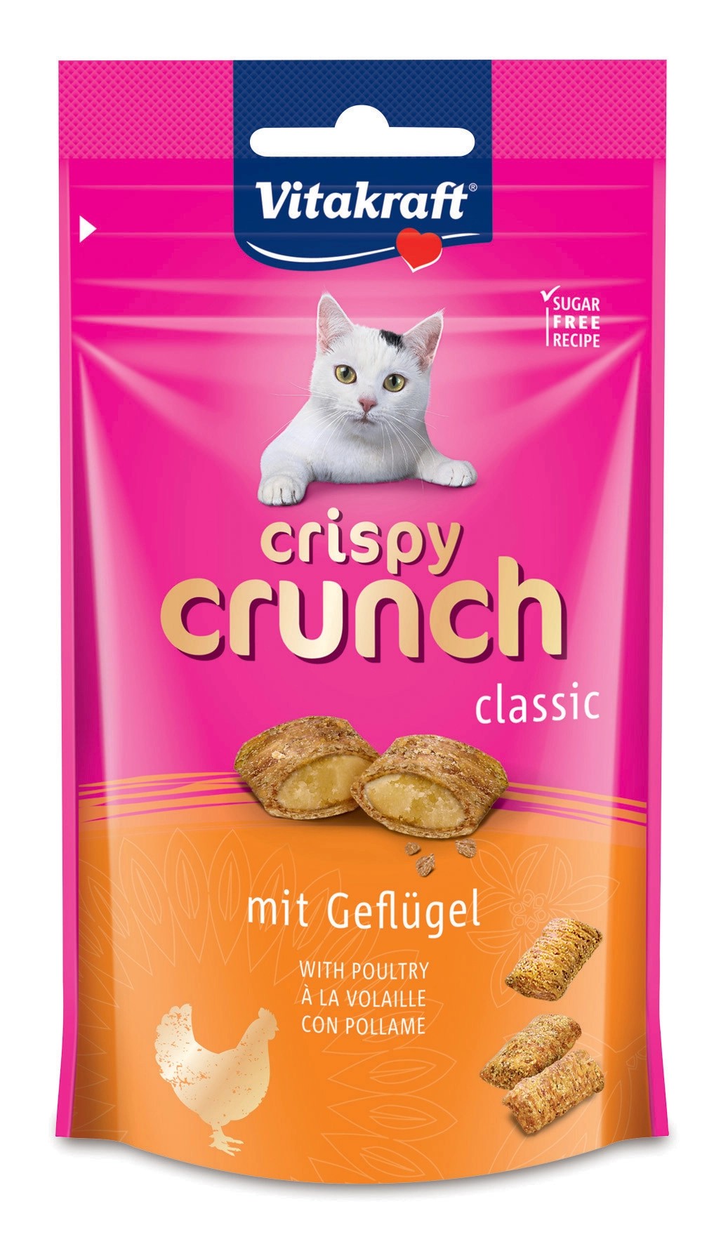 Deliziosamente croccanti con una marcia più! Irresistibili bocconcini croccanti con pollame e sfizioso ripieno cremoso, un boccone dopo l`altro, il top assoluto per tutti i gatti. Ricetta senza zucchero. Ideali come piccolo premio o per un tenero gesto d`affetto. In confezione richiudibile.